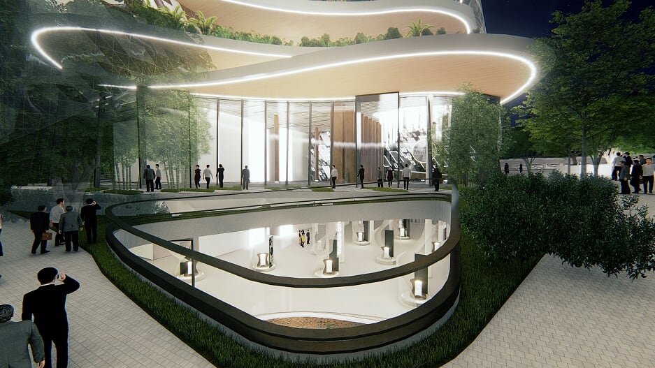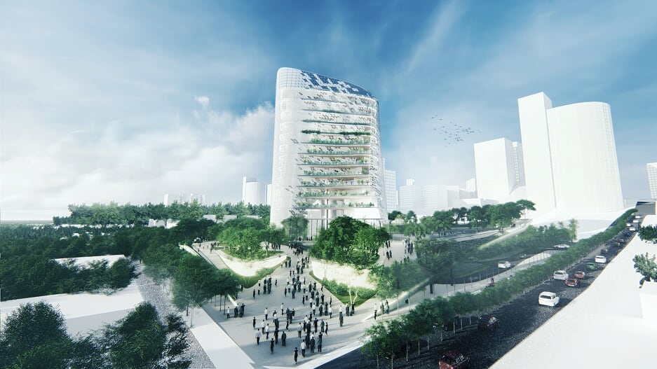 Instead of creating separate structures to form the complex, PLAZA BALANGHAI divides the complex into two entities: a vertical tower and a horizontal park. The tower contains the main offices whereas the park encapsulates the different supporting facilities of the MMDA.