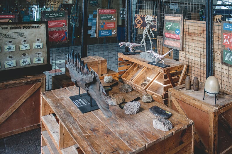 At Dino Lab, guests can examine actual fossils ranging from dinosaur bones, to petrified wood, and even remains of extinct ancient creatures.