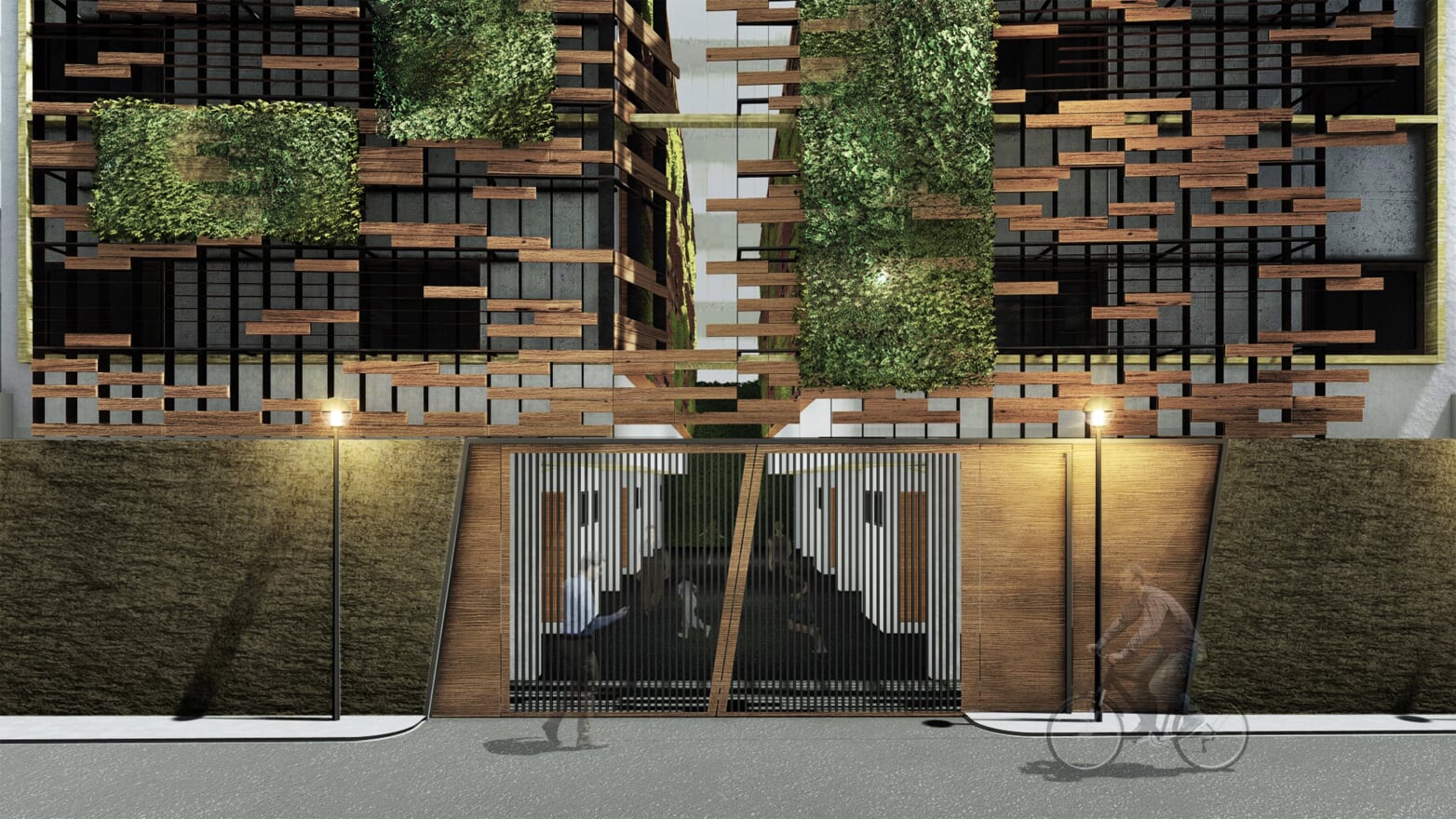 Due to the lack of green spaces within the project’s immediate environment, landscaping was introduced to the development. A living wall was created the rear wall while a green façade was integrated into the shading system.