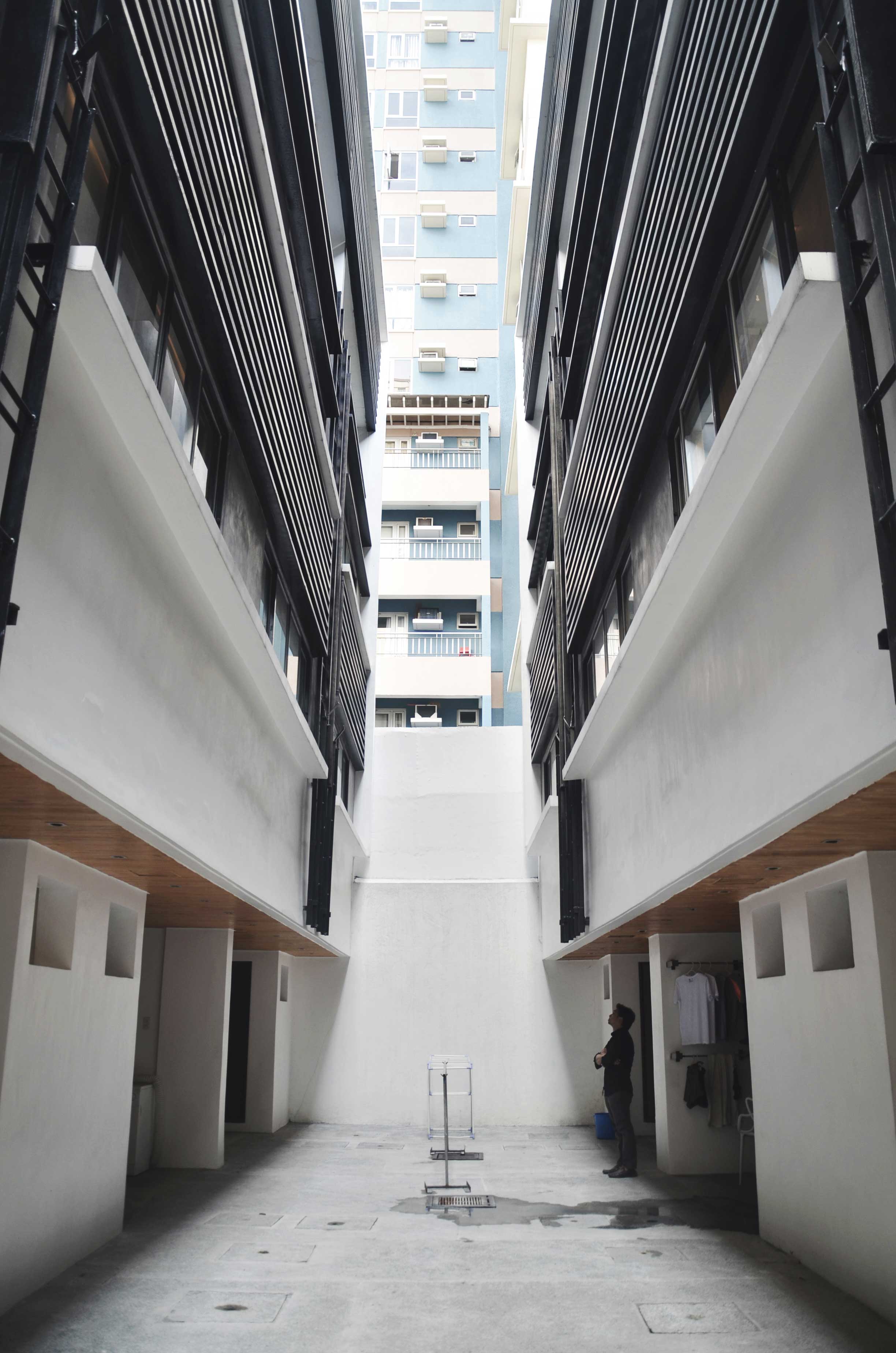 The development was comprised of two (2) parallel blocks (consisting five units each) separated in the middle by a driveway. As a response, a suspended “screen” was introduced the middle to separate the blocks. By doubling the “screen” and placing them near the building surface of each block, a sense of protection and privacy was created. Another “screen” was introduced to unify the blocks in front – thus conceiving a singular architectural dialogue. Through surface manipulations, the “screens” were connected and were converted into a louver system providing safety and shading akin to the local climate.