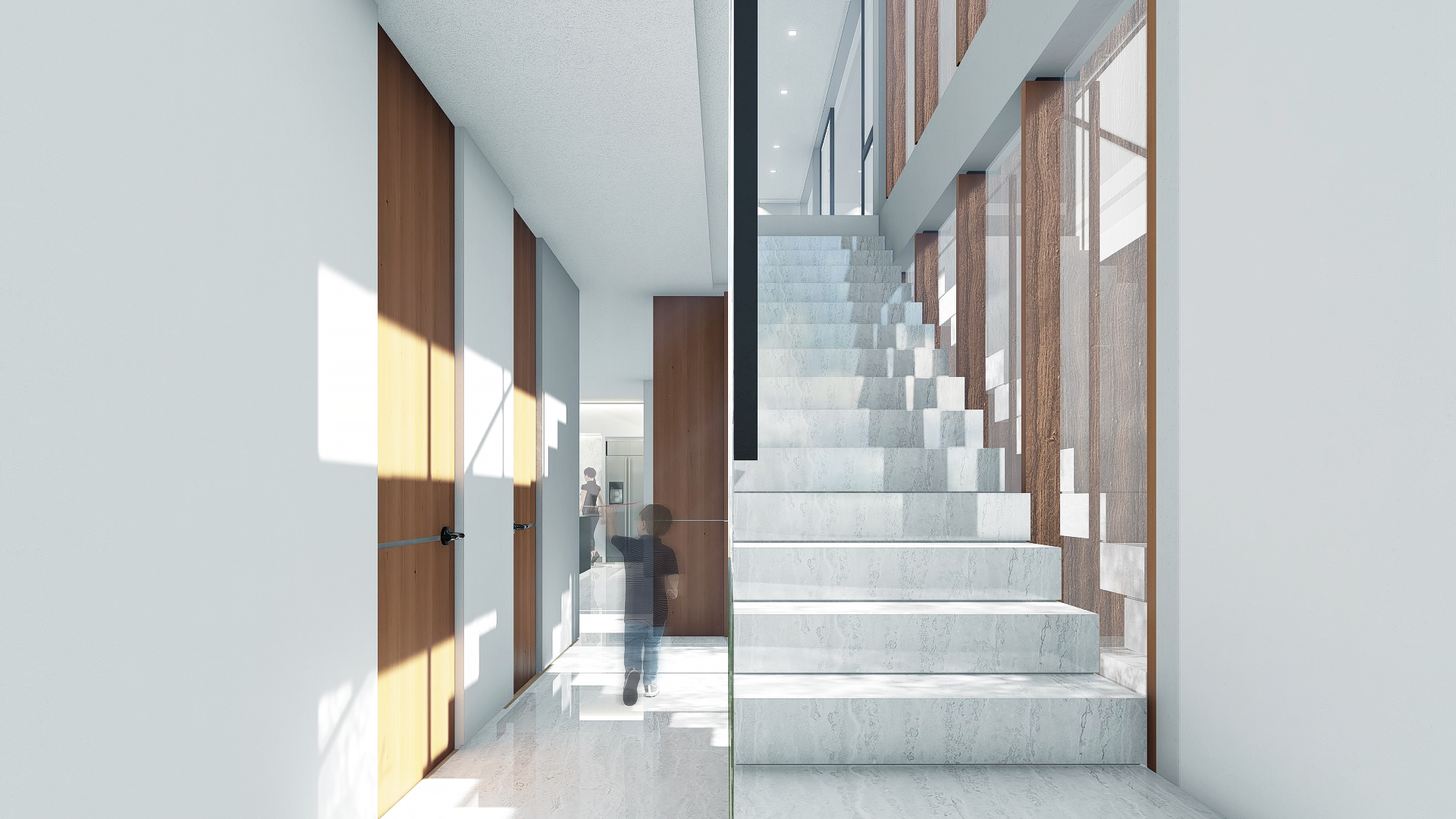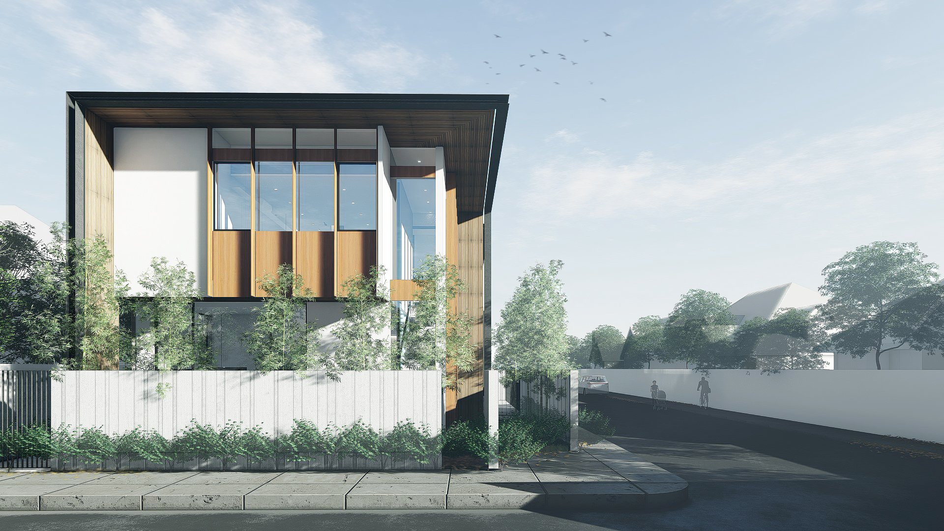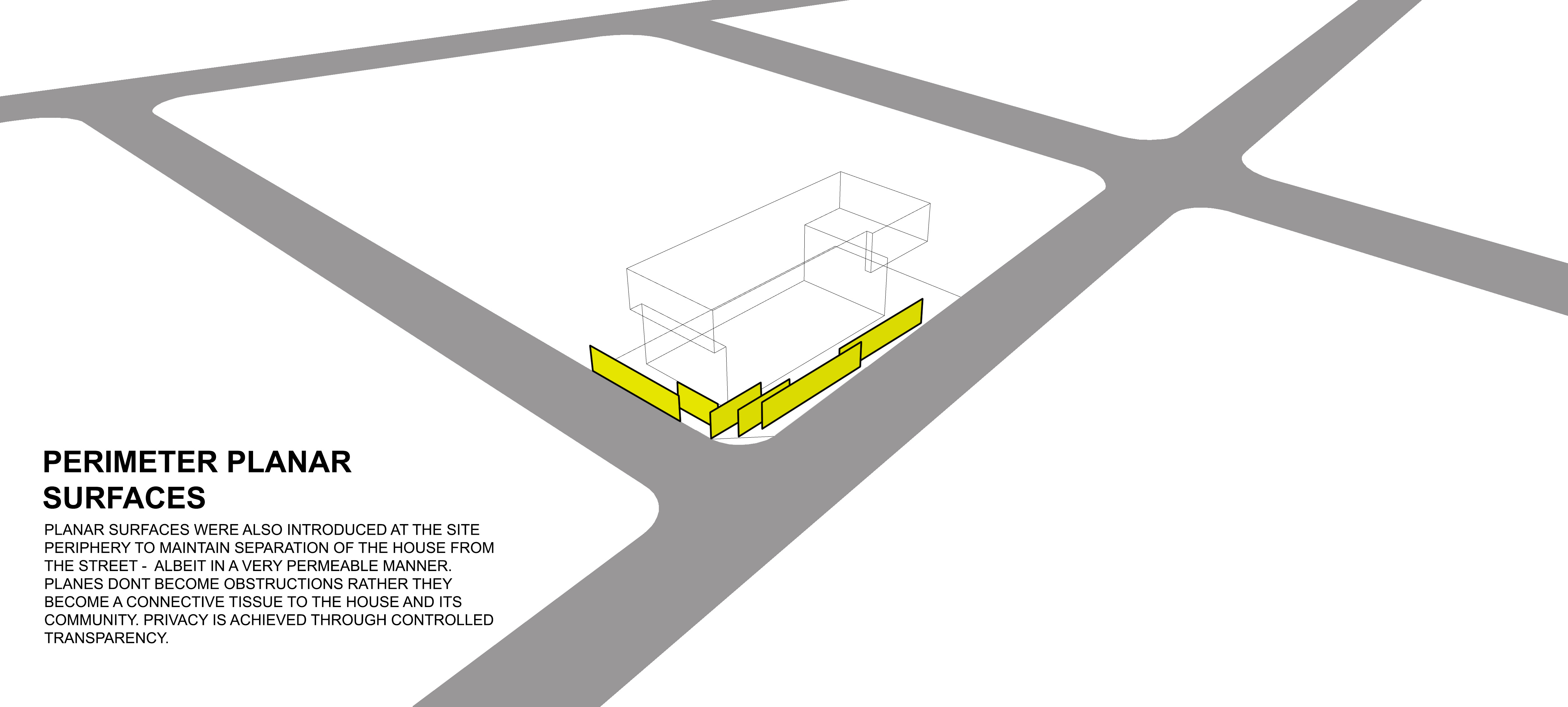 Planar surfaces were introduced to provide security and to create a flexible subdivision of spaces, experientially and programmatically. Planes don’t become obstructions. Rather, they become a connective tissue to the house and its community. Privacy is achieved through controlled transparency.